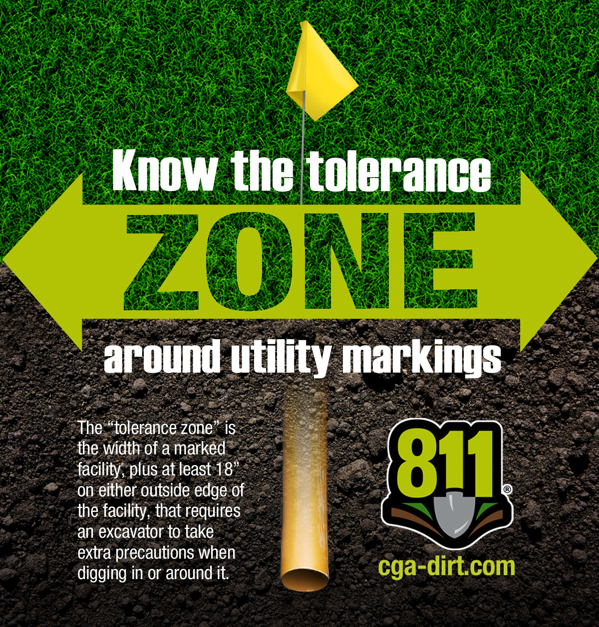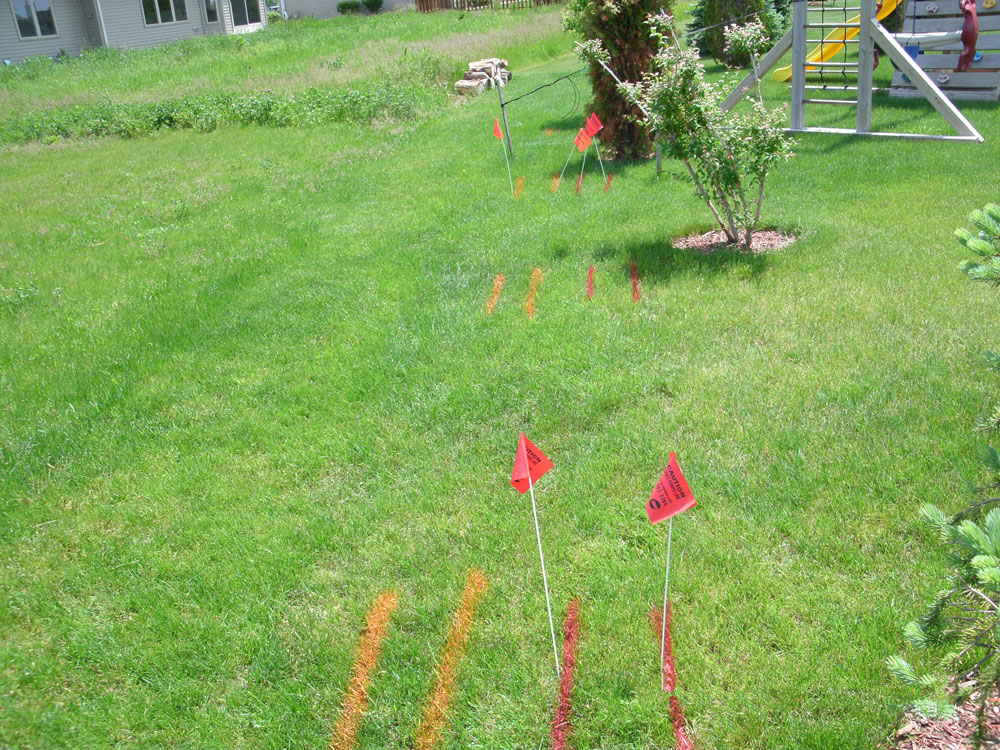 The painted lines and flags placed by the utility locators provide an approximate location of the buried lines. It is best to avoid digging in areas where buried utilities are located. If you need to dig closer than 18 inches from the marks, proceed carefully using only hand tools.
